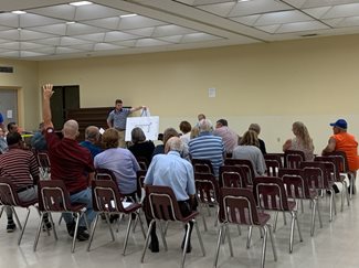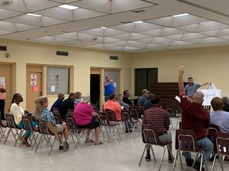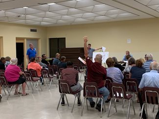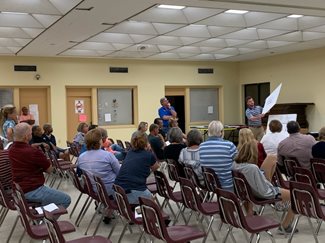 Photo of Councilmember Ferraro at a community meeting which was held on October 03, 2019. 2018-493 New Berlin Road and Lord Nelson Blvd. proposed Townhomes.