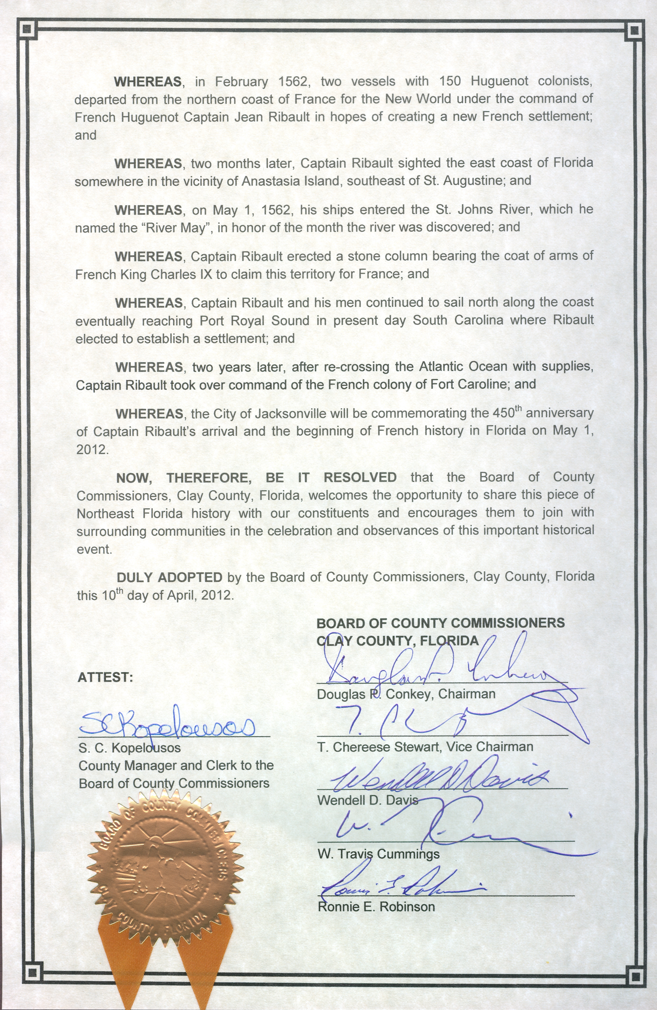 Beaufort County, South Carolina - The Beaufort County Historical Society and the Committee to honor the 450th landing of Jean Ribaut is pleased to announce the schedule of events to honor the first French stronghold and the first Huguenot/Protestant settlement in the New World.
