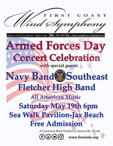 First Coast Wind Symphony with special guests Navy Band Southeast and Fletcher High School present an Armed Forces Day Concert Celebration on Saturday, May 19th.
