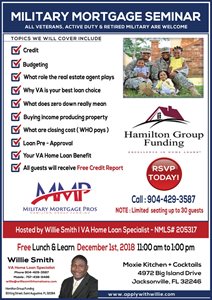 There will be a free lunch and learn on December 1, 2018 from 11:00 am to 1:00 pm. All Veterans, active duty and retired military are welcome. This event is limited seating to up to 30 guest. Please call (904) 429-3587 to reserve a seat.