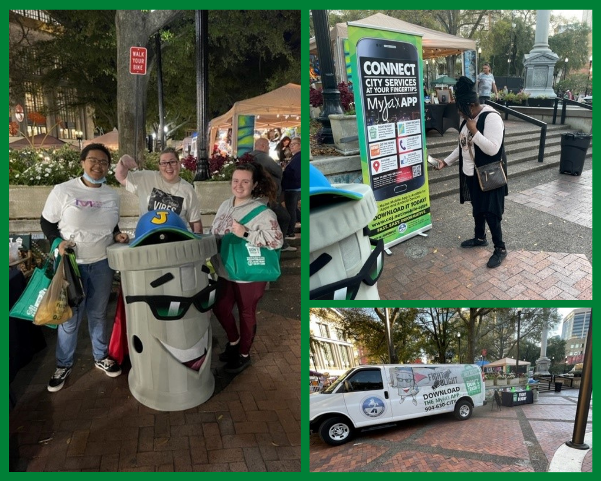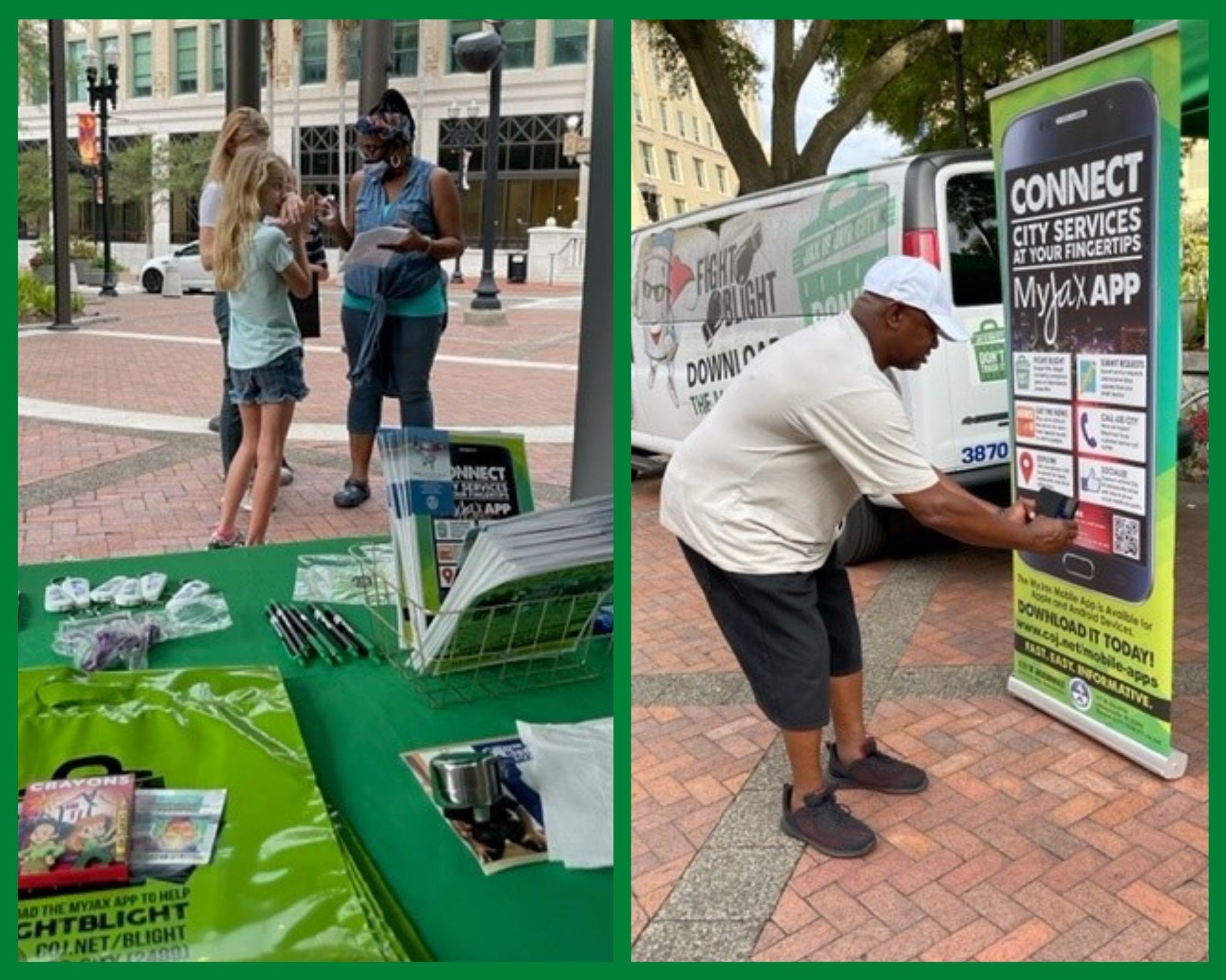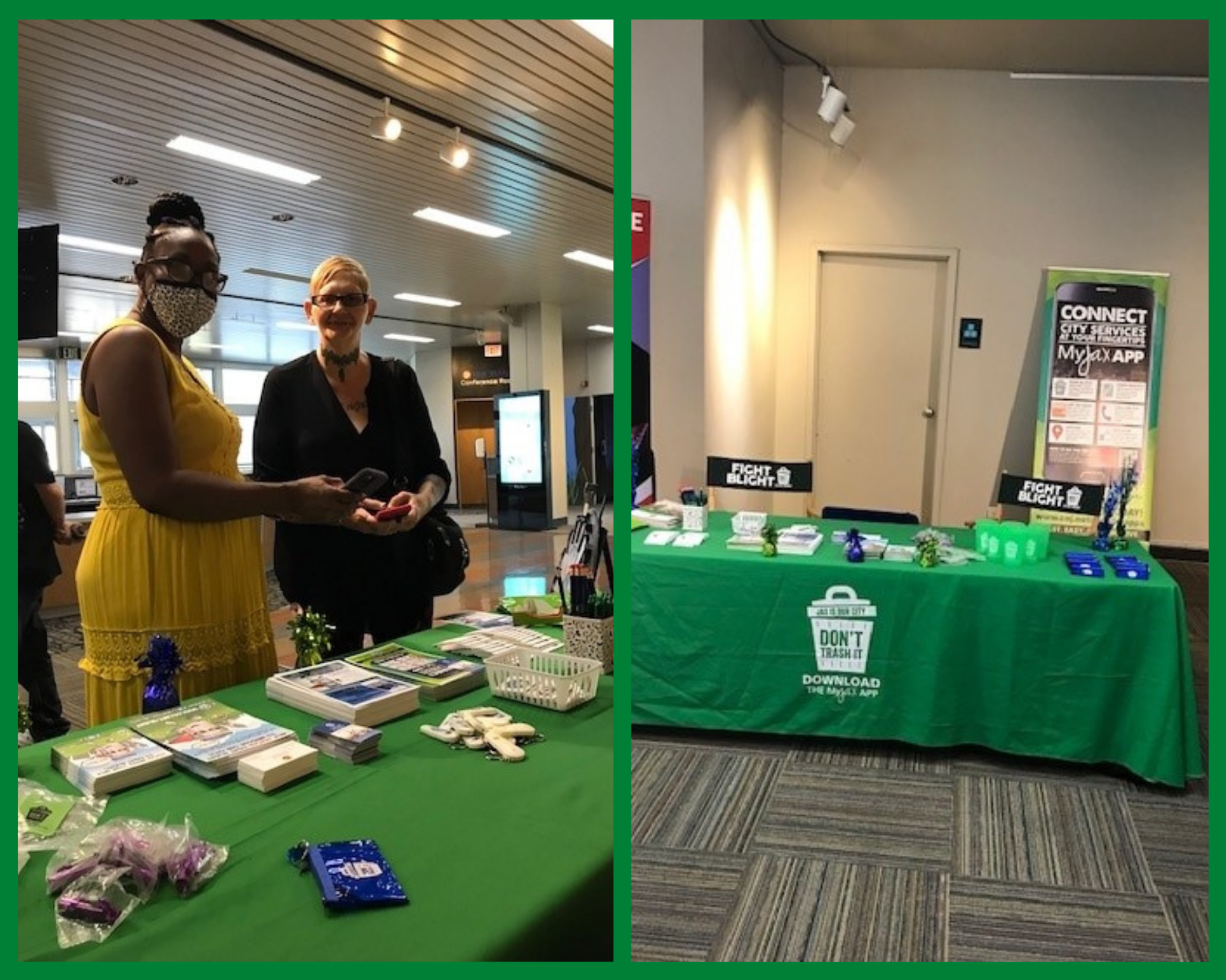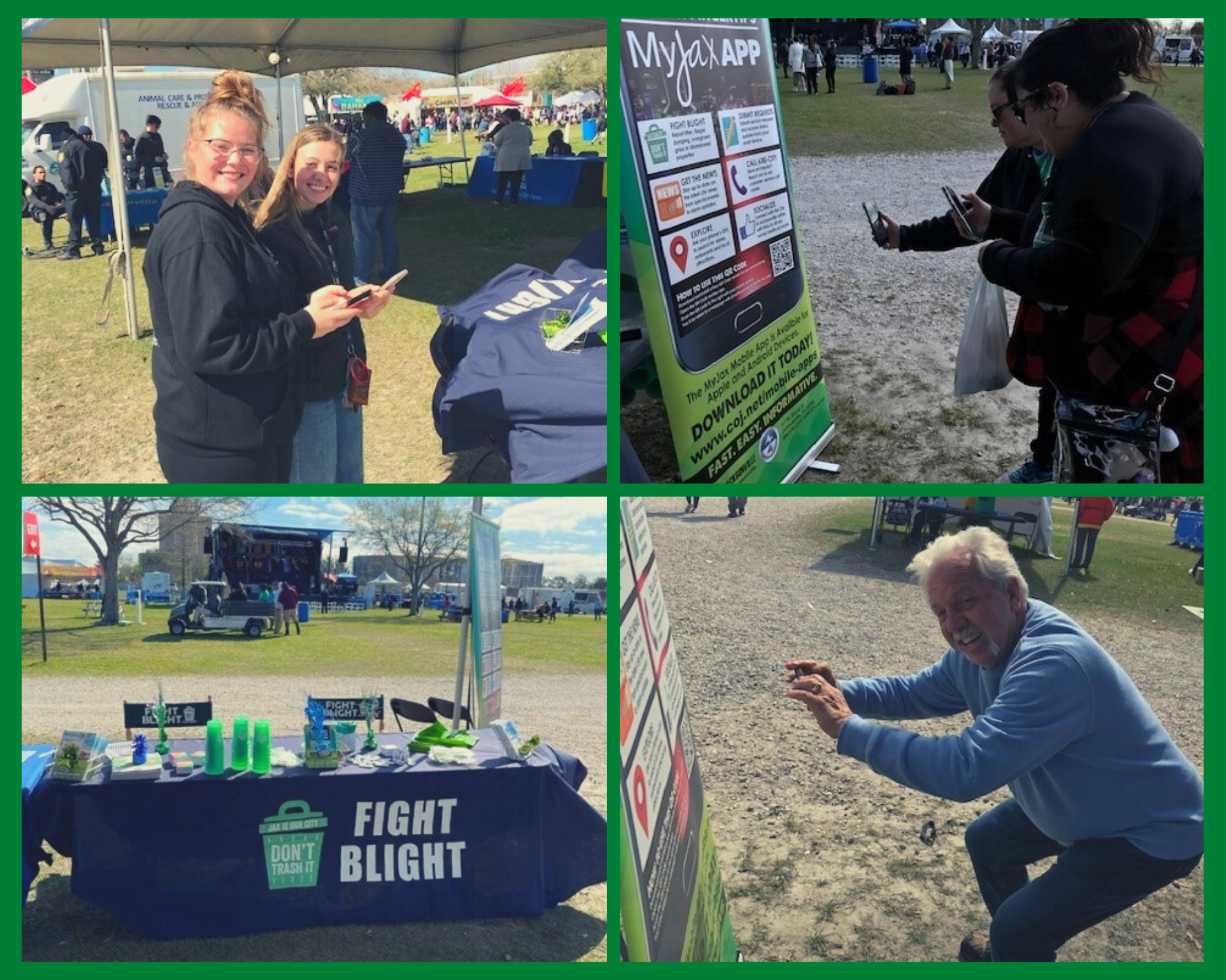 The Blight booth was one of the busiest vendors at this well attended event, with more than 100 citizens stopping by to learn more about how they can help Fight Blight in their local neighborhoods. There were several citizens from multiple communities that did not know about Fight Blight or the MyJax app, and being able to educate them was awesome. Our booth staff assisted citizens in downloading and operaing the MyJax app to report problems as well as find out information about trash pickup.