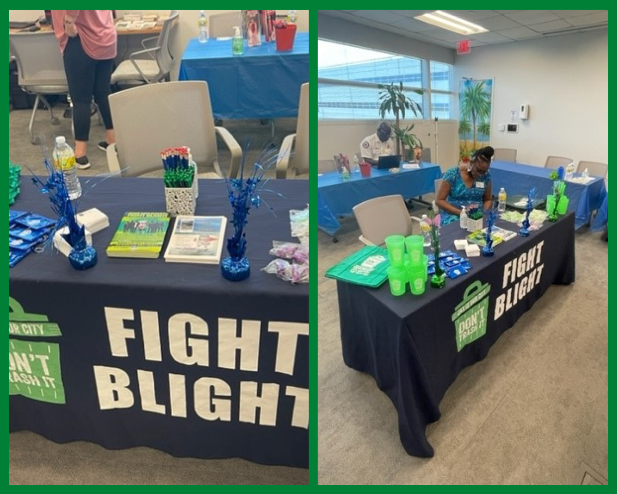 The blight booth received heavy foot traffic from individuals, colleagues, managers, supervisors and staff members. Attendees enjoyed a variety of vendors that were there to demonstrate their support for environmental protection. The Fight Blight team was there to educate the citizens on blight initiatives and the use of the MyJax app.