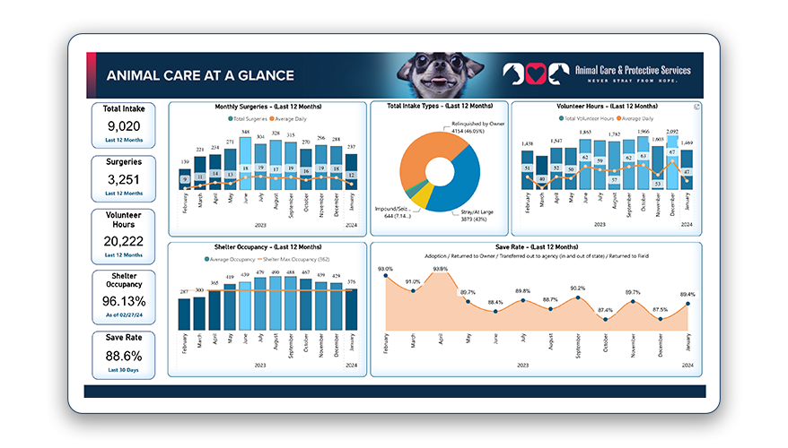 Florida Statue 823.15 requires that county animal control agencies report intake and outcome statistics. On this page you can find monthly reports from the shelter for the current year, annual reports from previous years,and a link to our brand new transparency dashboard.