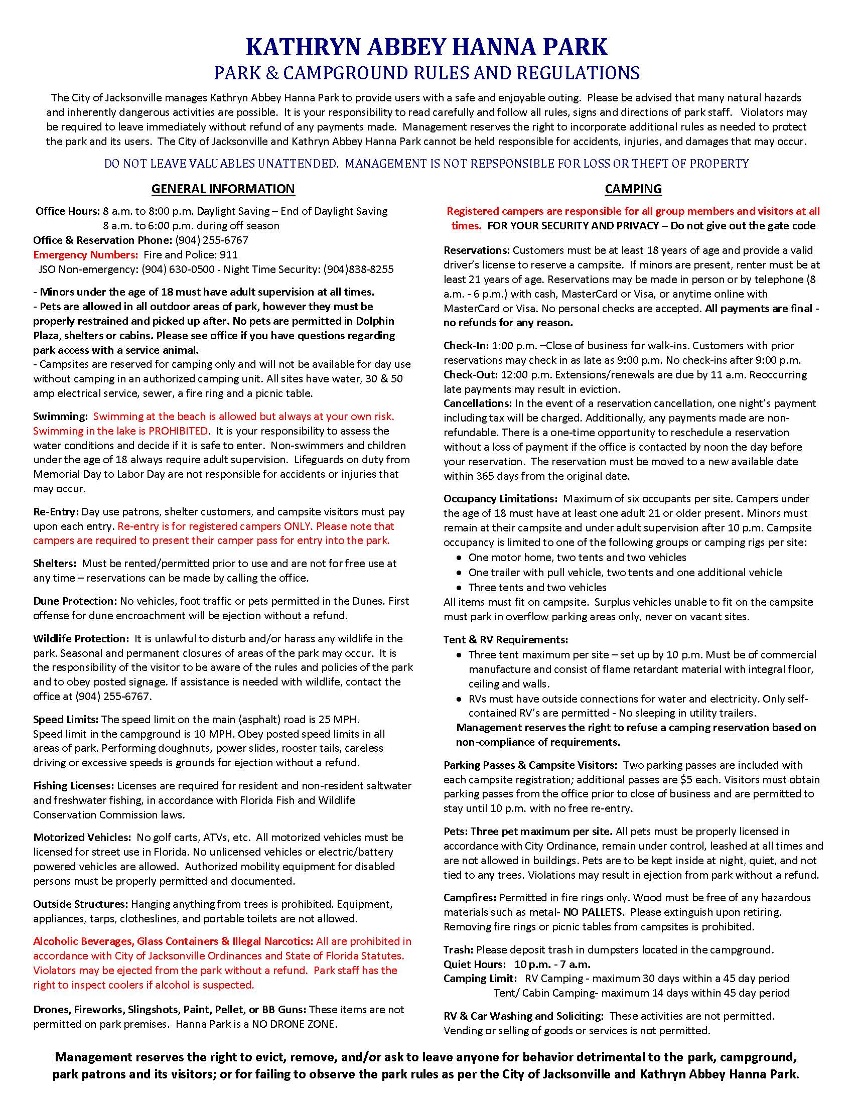 Hanna Park has implemented a new camping reservation system which will allow booking of campsites using debit or credit cards. Please visit the following link to make your reservation! Hanna Park On-line Reservations/Campground Map