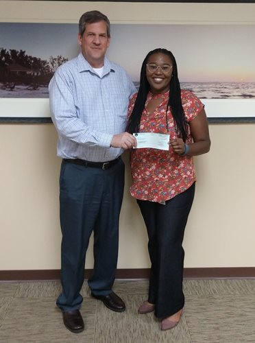 Planning and Development Department Director William B. Killingsworth is presenting Ladayija Nicholes a $1,000 scholarship check for the 2019-2020 academic year from the Jesse B. Smith Memorial Scholarship Fund.
