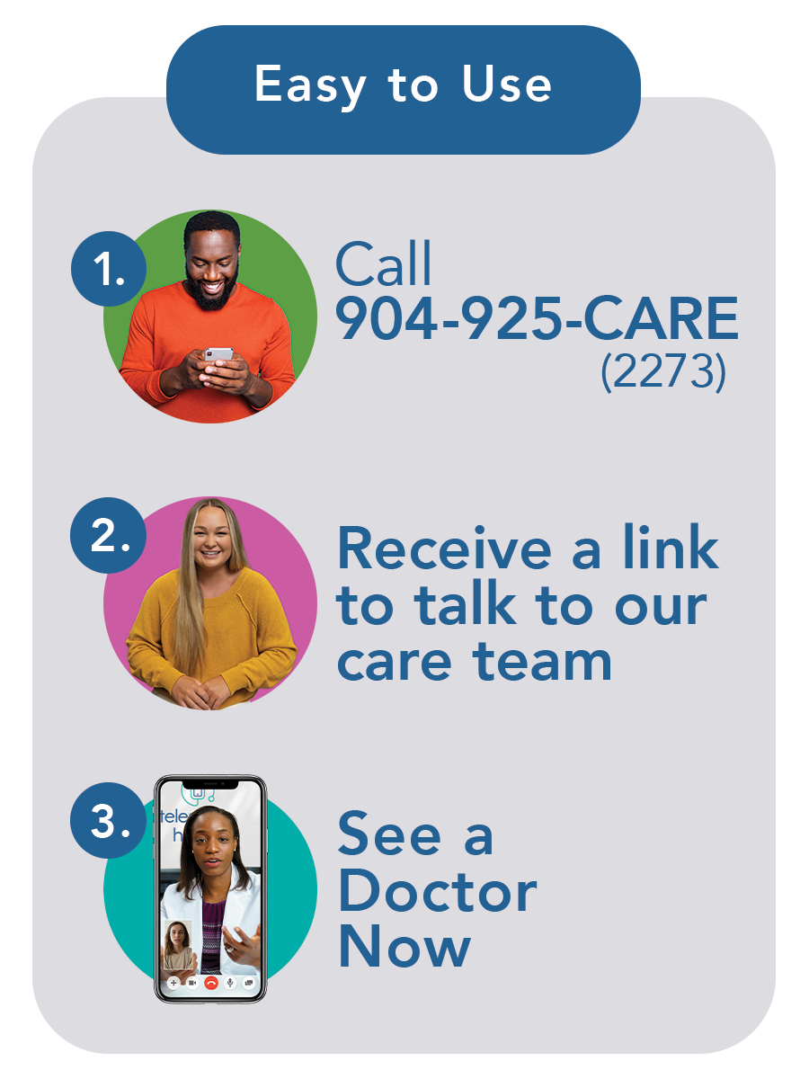 By calling 904-925-CARE (2273), you’ll be connected with our care team to start your healthcare journey.