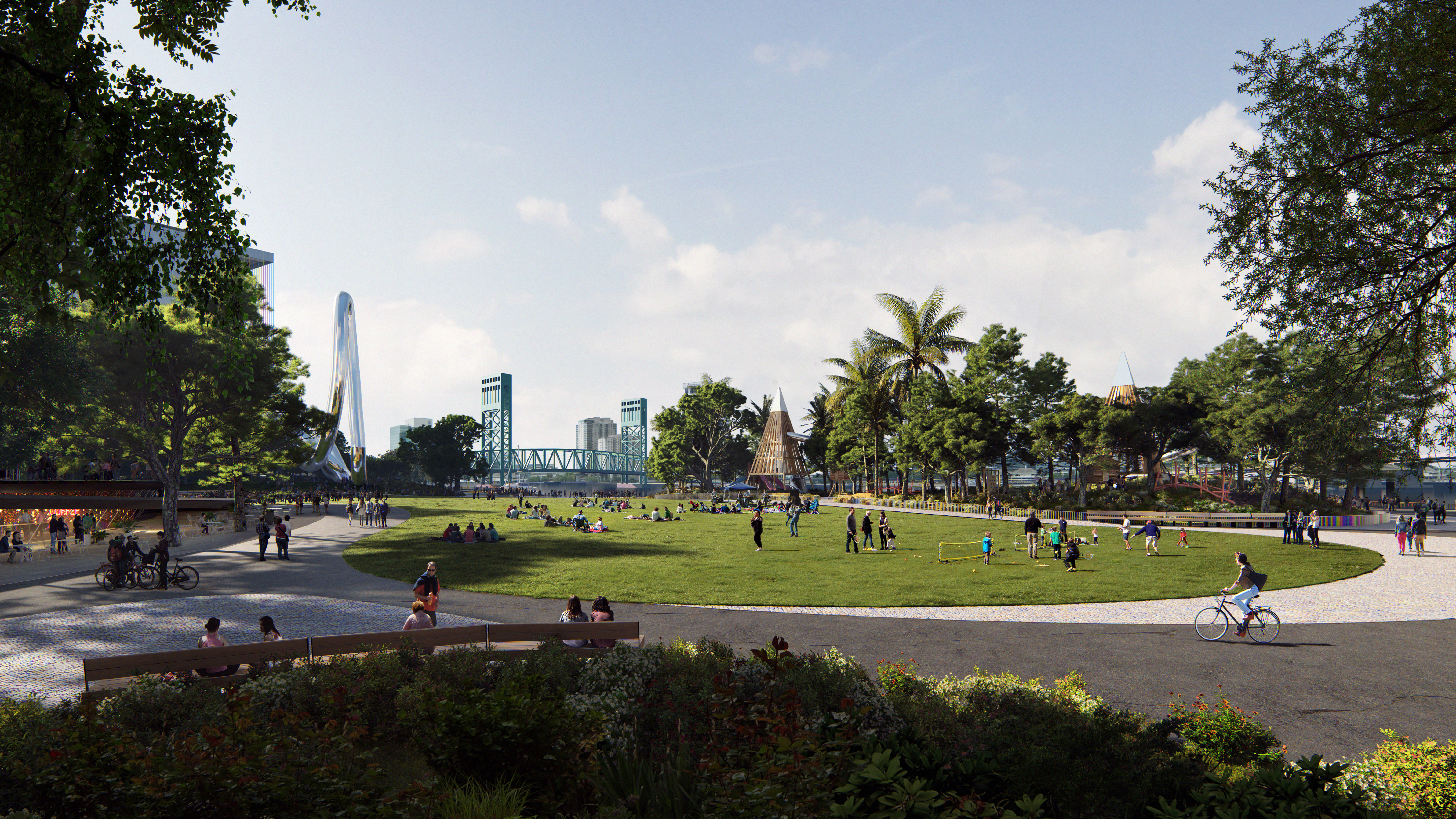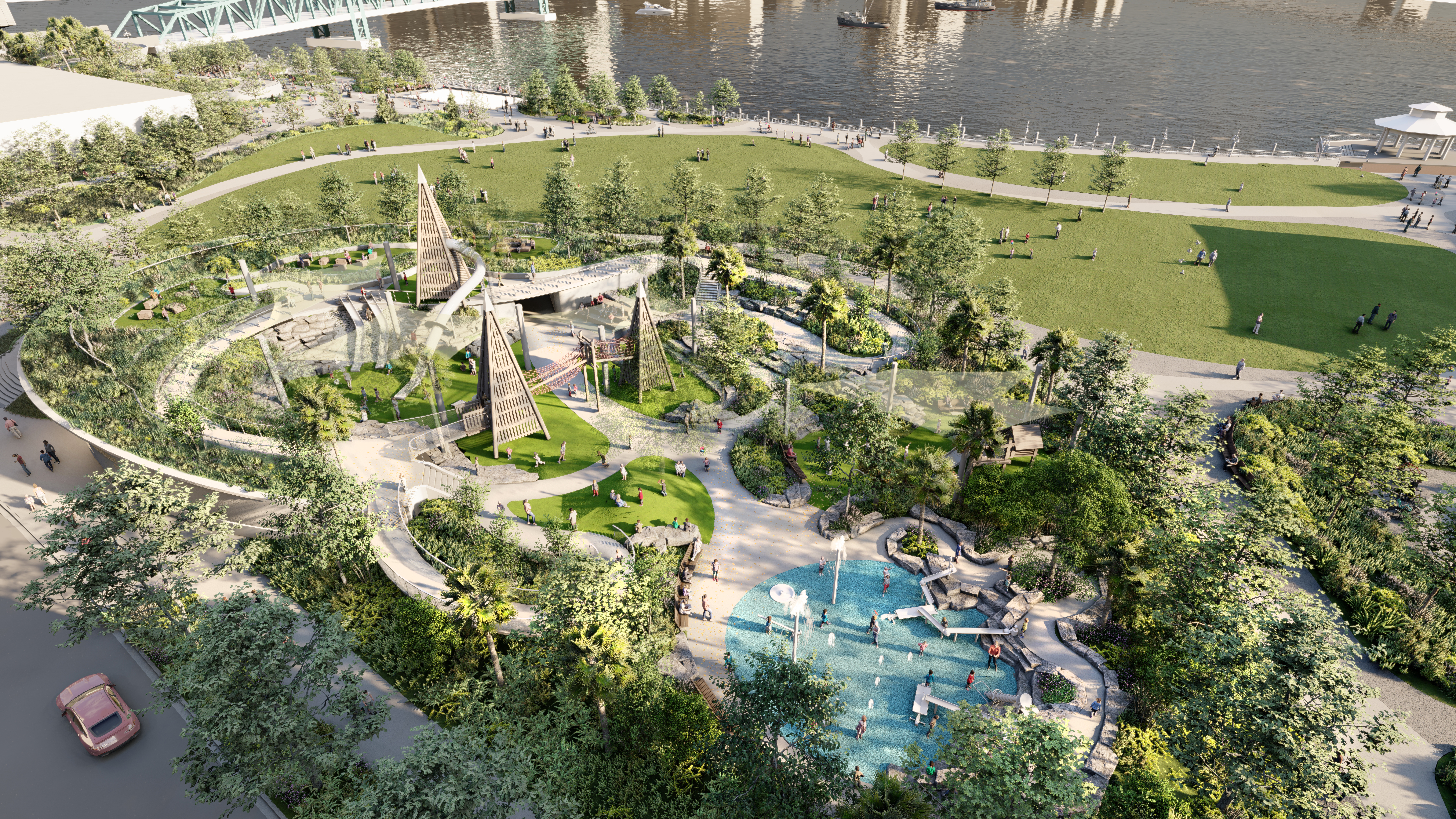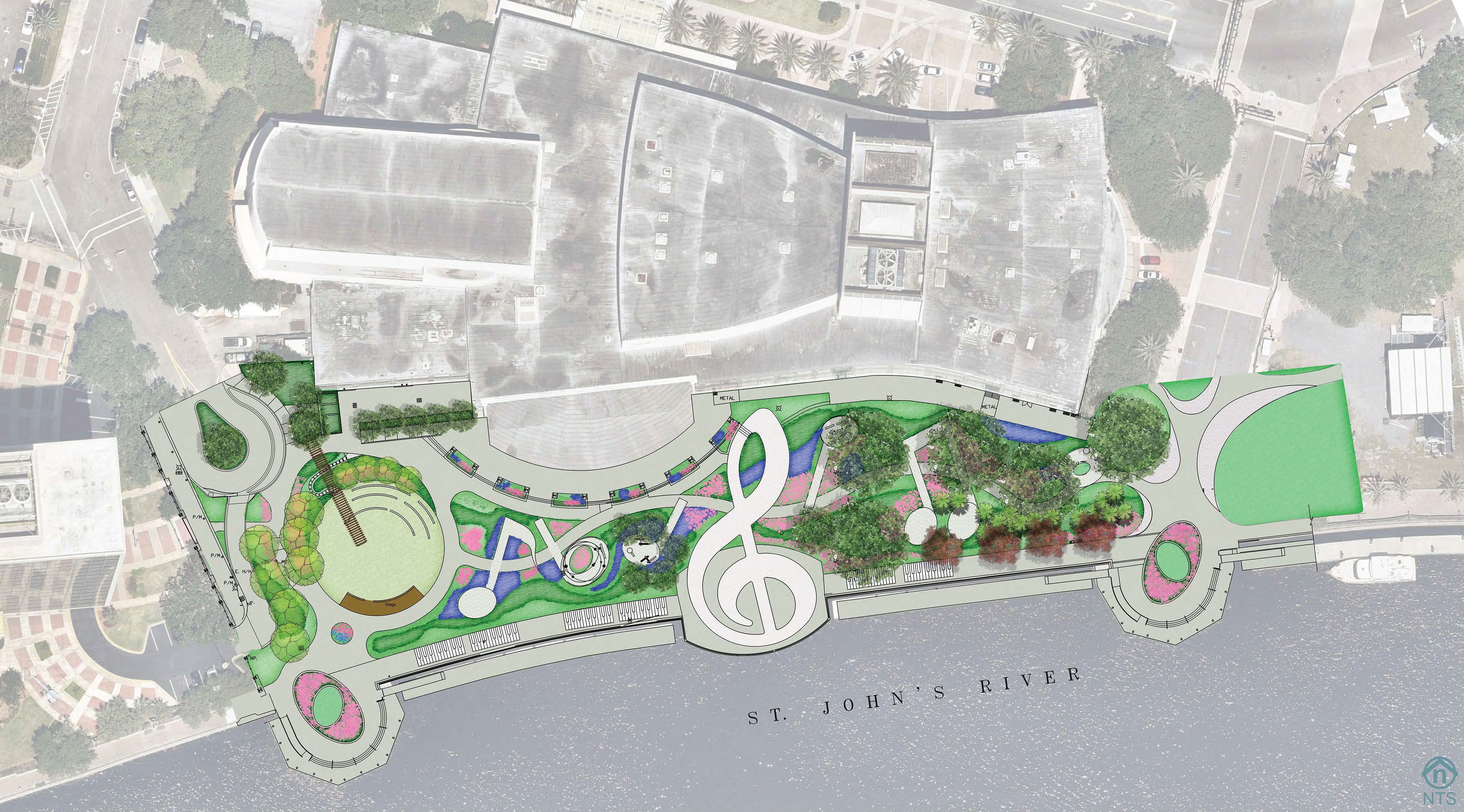 The waterfront of the Jacksonville Center for the Performing Arts is being transformed into an engaging, dynamic park that celebrates Jacksonville’s rich musical heritage. Planned features include the Musical Heritage Garden, which honors local musicians and composers through interactive art elements and a dedicated Walk of Fame. The park will also offer a children’s musical play equipment and a cutting-edge outdoor projection venue.