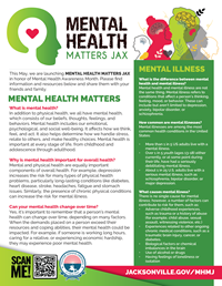 Mental Health First Aid is an evidence-based, early-intervention course that teaches the community about mental health and substance use challenges. It will prepare you to support those around you and will teach the skills needed to recognize and respond to signs and symptoms of mental illness, as well as how to provide someone with initial support until they connect with appropriate professional help. In this course, you will learn risk factors and warning signs for mental health, strategies to help someone in a crisis and where to turn for help. The City of Jacksonville is partnering with Starting Point Behavioral Healthcare to train over 1500 citizens in Mental Health First Aid.