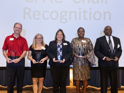 The honorees for the evening included the 2023 CPAC Chairs. Pictured Left to Right: Dr. Donald Green - North, Joanne Parker Griffin - Southeast, Kim Pryor - Urban Core, Rhonda Boyd - Northwest, Dr. Willie Crosby - Southwest, NOT PICTURED William Messer - Greater Arlington/ Beaches